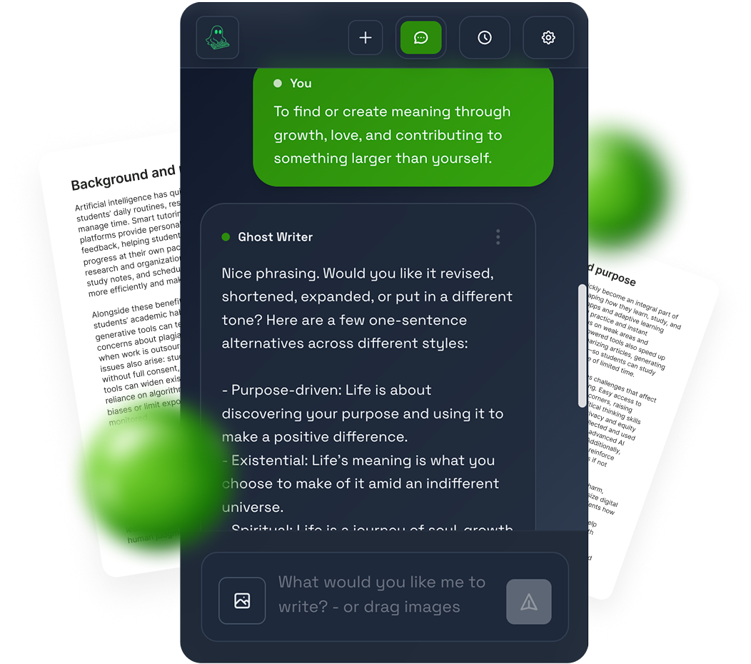 No matter which plan you choose, you get the core GhostWriter experience. These features are always part of Lite, Pro, and Custom, so you can write naturally, rewrite fast, and keep your drafts looking real.